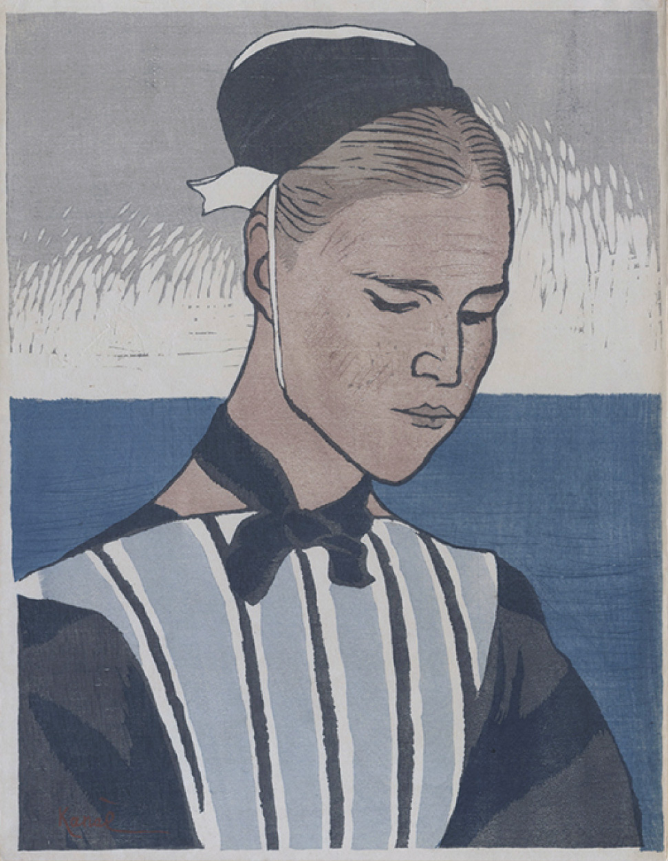 The colours of text, background and other elements of the site are derived from Breton Woman (1920), a woodblock print by the Japanese artist Kanae Yamamoto.